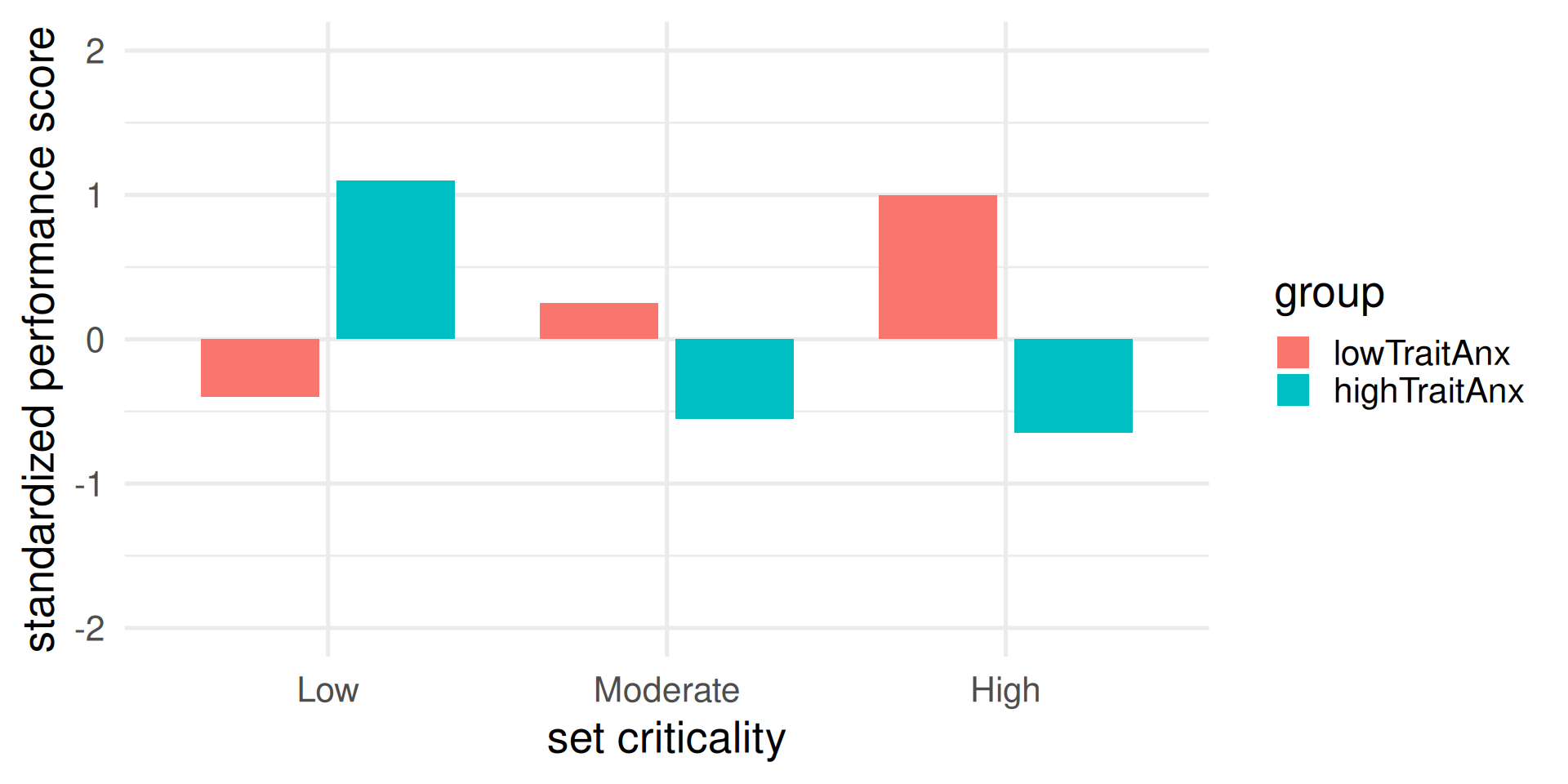 Performance drop was larger for the high-trait anxiety group
