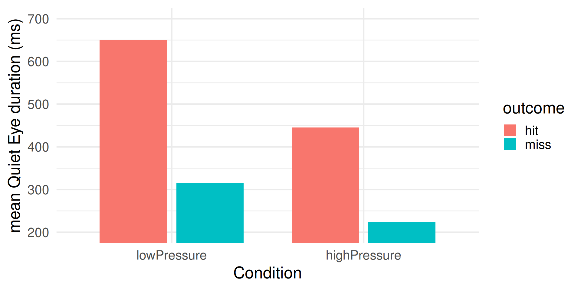 Effect of pressure: Shorter Quiet Eye duration under greater pressure.