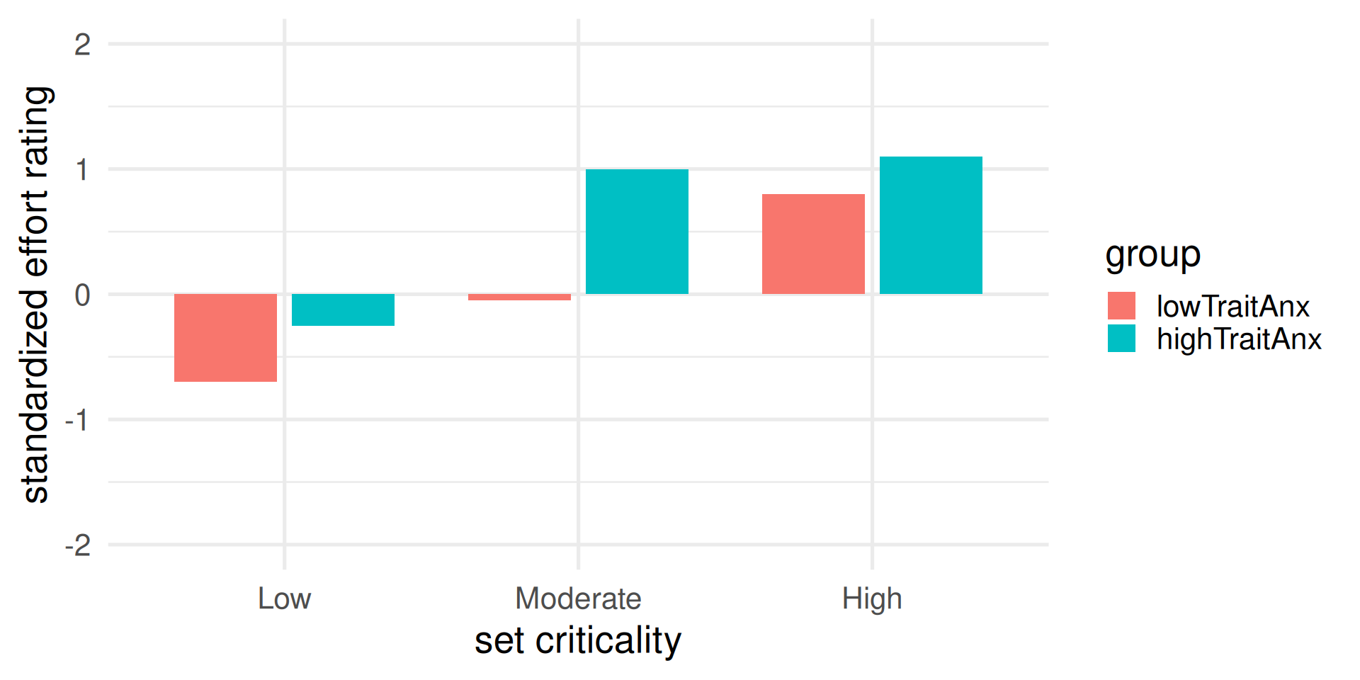 Self-report effort showed similar results, with the practice-to-competition increase much larger in the high-trait anxiety group.