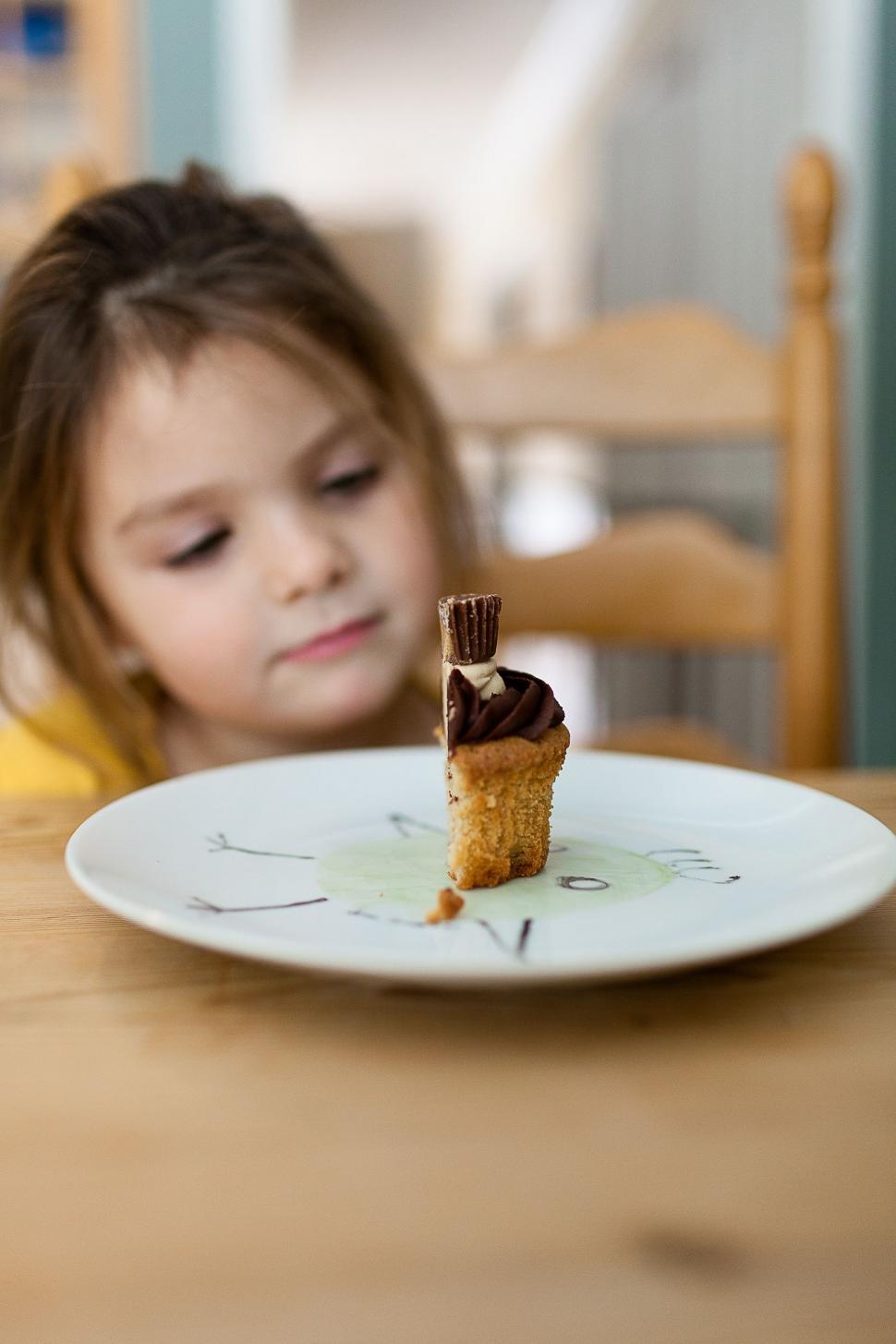 | child with sweets | Wait a bit longer. If you resist you will get more | The candy looks yummy. Eat it now! |