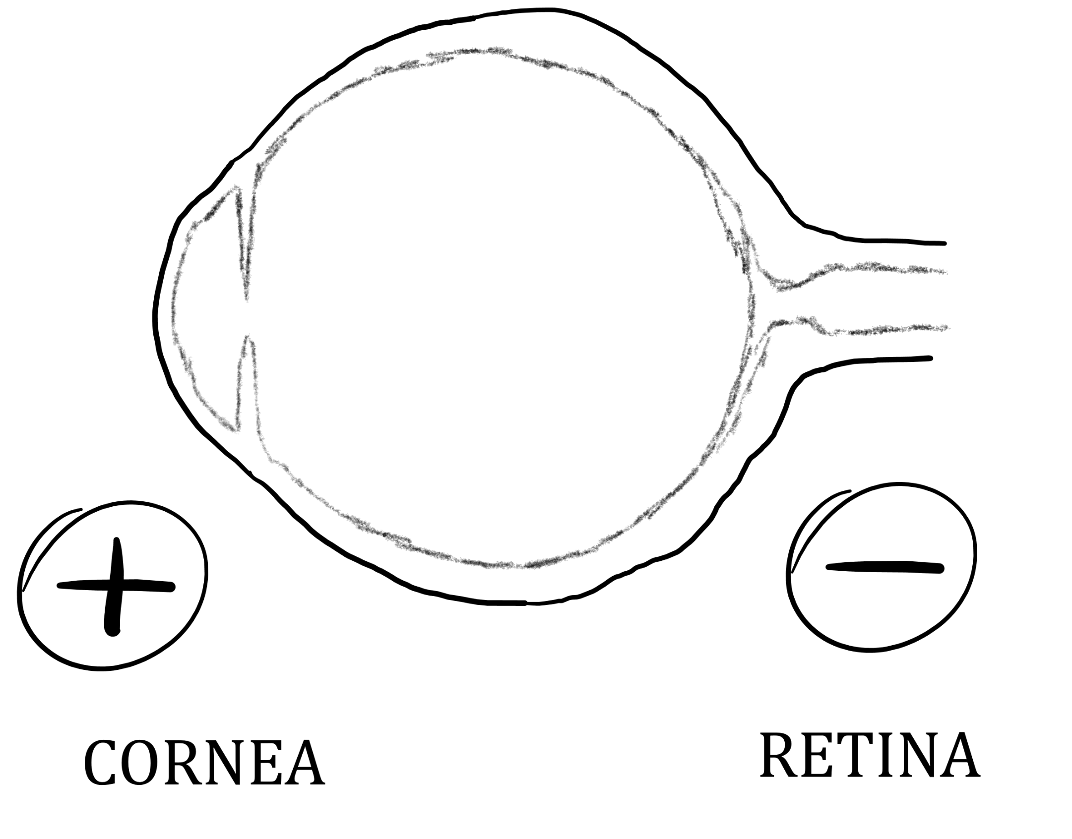 This creates a potential, called corneoretinal (or corneofundal) potential. This potential forms a dipole.